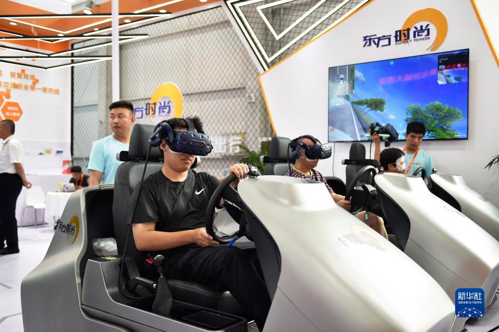 9月5日,觀眾在服貿(mào)會首鋼園區(qū)體驗東方時尚駕校的vr模擬駕駛機(jī)。