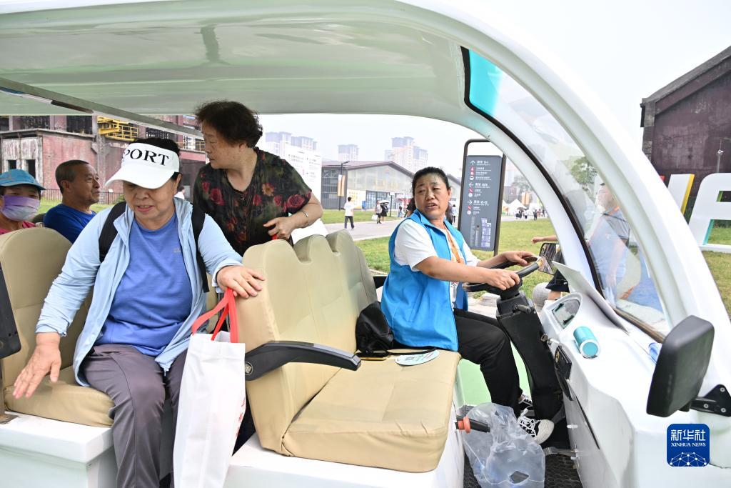 9月5日,擺渡車司機高現平提醒參觀者下車時注意。