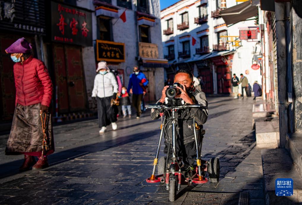 2017年,拉巴頓珠進入拉薩市殘疾人托養中心生活,日子過得安定有保障,但他說:“我還年輕,我也有夢想,我想靠自己的勞動養活自己。” 托養中心為殘疾人開設了多種課程,拉巴頓珠選擇了自己最感興趣的攝影和視頻制作。2021年,他離開托養中心,找到肢體殘疾的創業者覺列,到其開辦的文化傳播公司負責攝影和視頻制作,開始了自食其力的生活。