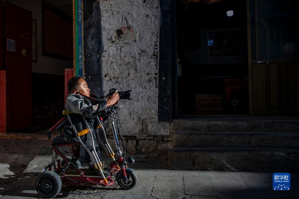 2017年,拉巴頓珠進(jìn)入拉薩市殘疾人托養(yǎng)中心生活,日子過得安定有保障,但他說:“我還年輕,我也有夢(mèng)想,我想靠自己的勞動(dòng)養(yǎng)活自己。” 托養(yǎng)中心為殘疾人開設(shè)了多種課程,拉巴頓珠選擇了自己最感興趣的攝影和視頻制作。2021年,他離開托養(yǎng)中心,找到肢體殘疾的創(chuàng)業(yè)者覺列,到其開辦的文化傳播公司負(fù)責(zé)攝影和視頻制作,開始了自食其力的生活。