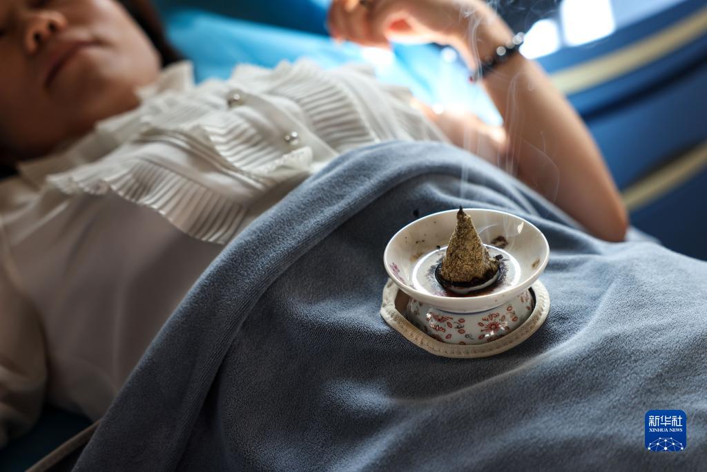 9月2日,在文登環(huán)山社區(qū)衛(wèi)生服務(wù)中心,患者在接受中醫(yī)診療。