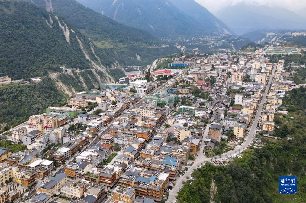 這是9月5日拍攝的瀘定縣磨西鎮(zhèn)(無人機照片)。