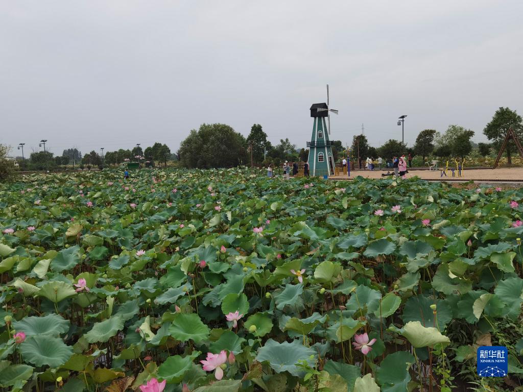 9月5日在江西南昌縣黃馬鄉羅渡村山下組拍攝的荷塘。羅渡村按照景區標準對村莊進行功能布局和整體改造,將過去房屋破舊、污水橫流的泥巴村建設成宜居宜業宜游的美麗鄉村。