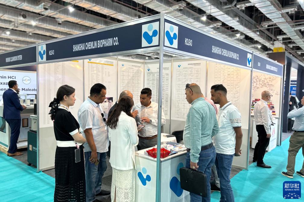 9月3日,在埃及開羅舉辦的2023埃及醫藥展上,參觀者在一家中國醫藥企業的展位上了解信息。