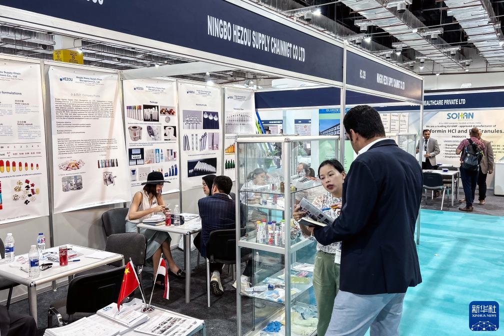 9月3日,在埃及開羅舉辦的2023埃及醫藥展上,參觀者在一家中國醫藥企業的展位上了解信息。