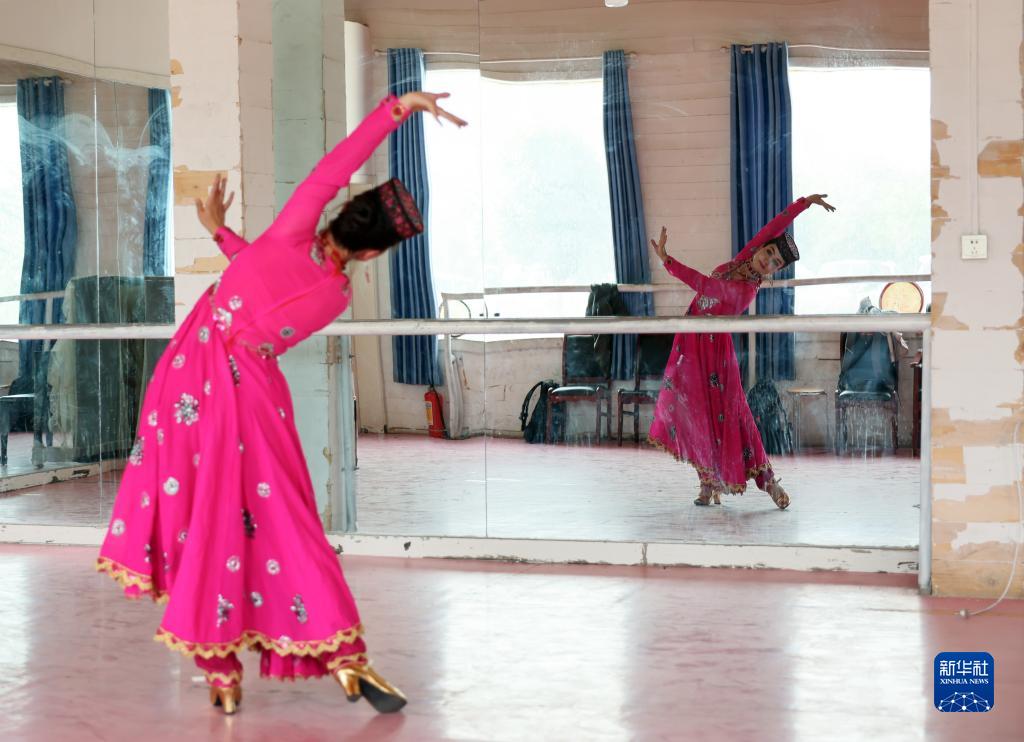 在新疆塔什庫爾干塔吉克自治縣帕米爾旅游區游客服務中心,縣文工團演員在演出前做準備(9月4日攝)。