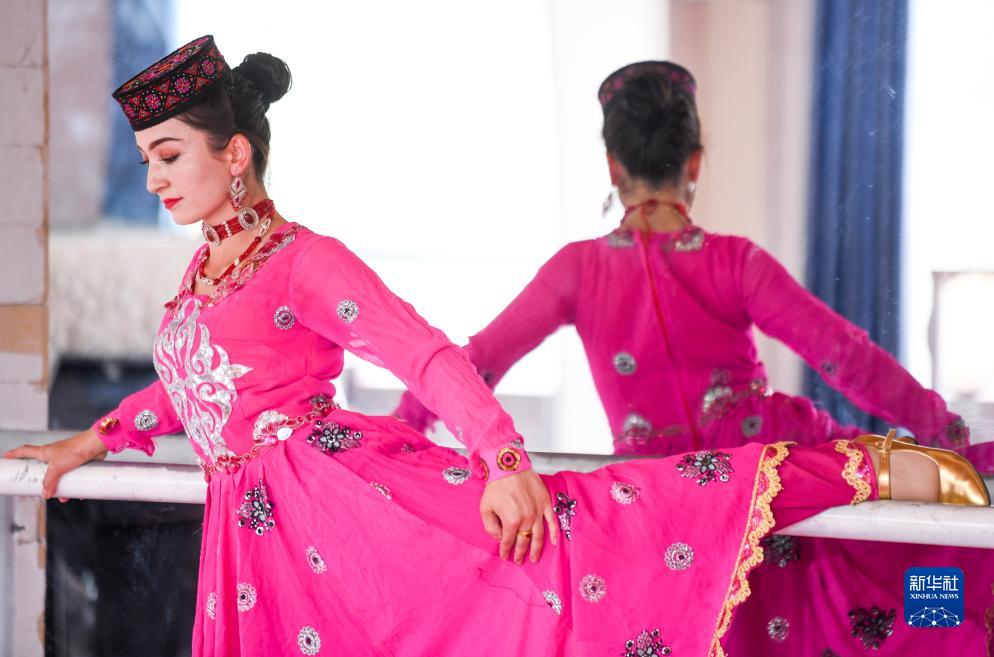 在新疆塔什庫爾干塔吉克自治縣帕米爾旅游區游客服務中心,縣文工團演員在演出前做準備(9月4日攝)。