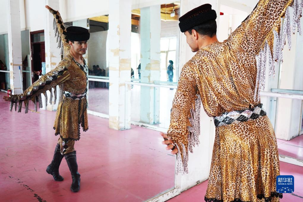 在新疆塔什庫爾干塔吉克自治縣帕米爾旅游區(qū)游客服務(wù)中心,縣文工團演員在演出前做準備(9月4日攝)。