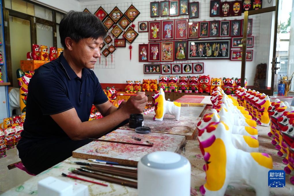9月5日,在山東省高密市姜莊鎮(zhèn)的一處非遺工坊,非遺代表性傳承人聶宏希在制作泥老虎產(chǎn)品。