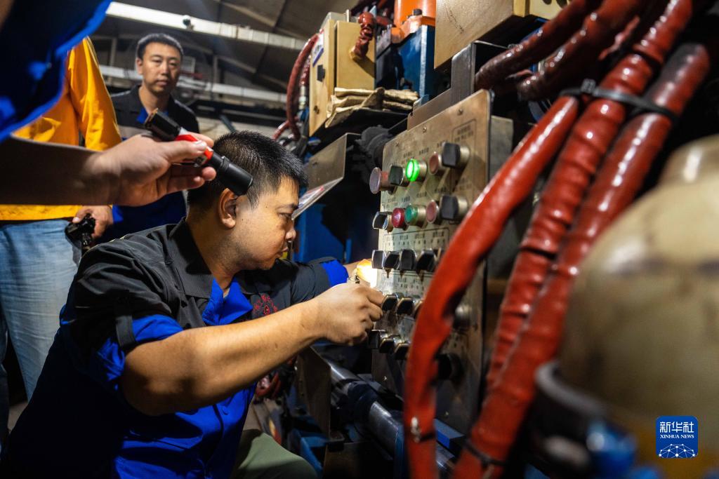 9月6日凌晨,鐵路工人在京廣高鐵株洲西至衡山西區間進行換軌施工。