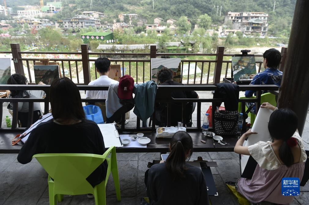 9月5日,學(xué)生在林州市石板巖鎮(zhèn)寫生。