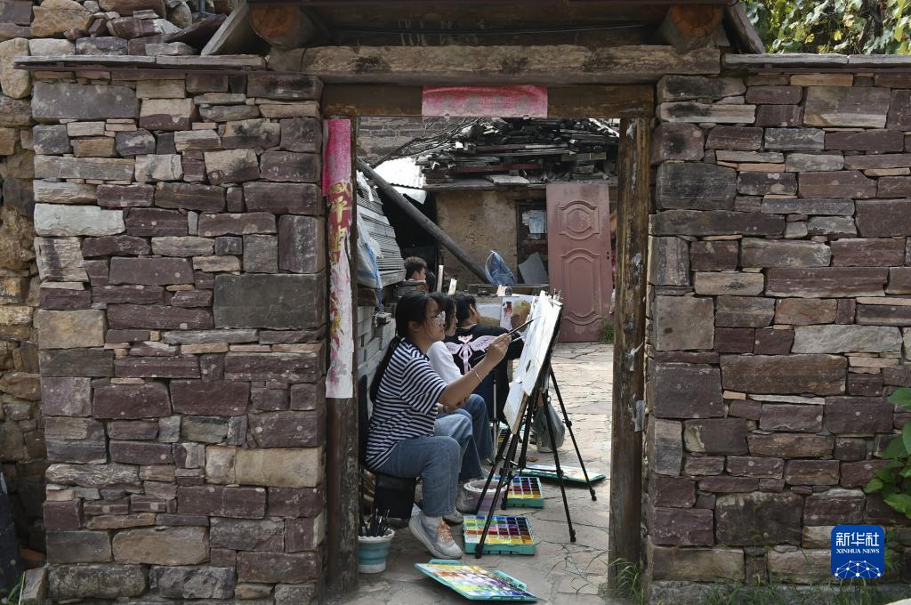 9月5日,學(xué)生在林州市石板巖鎮(zhèn)高家臺村寫生。