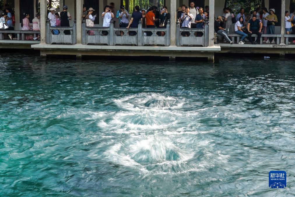 當日,被譽為“天下第一泉”的濟南趵突泉“水涌若輪”,自2003年9月6日復涌至今,已持續噴涌20年,當日趵突泉地下水位達29.34米。