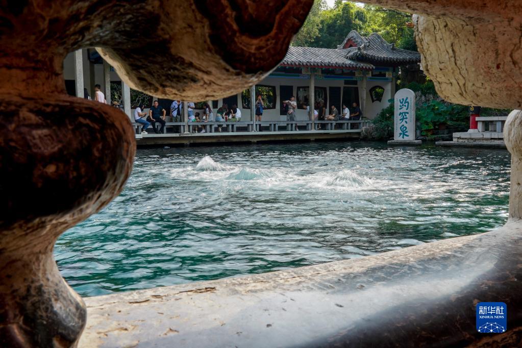 9月6日,游客在濟南趵突泉公園內參觀。