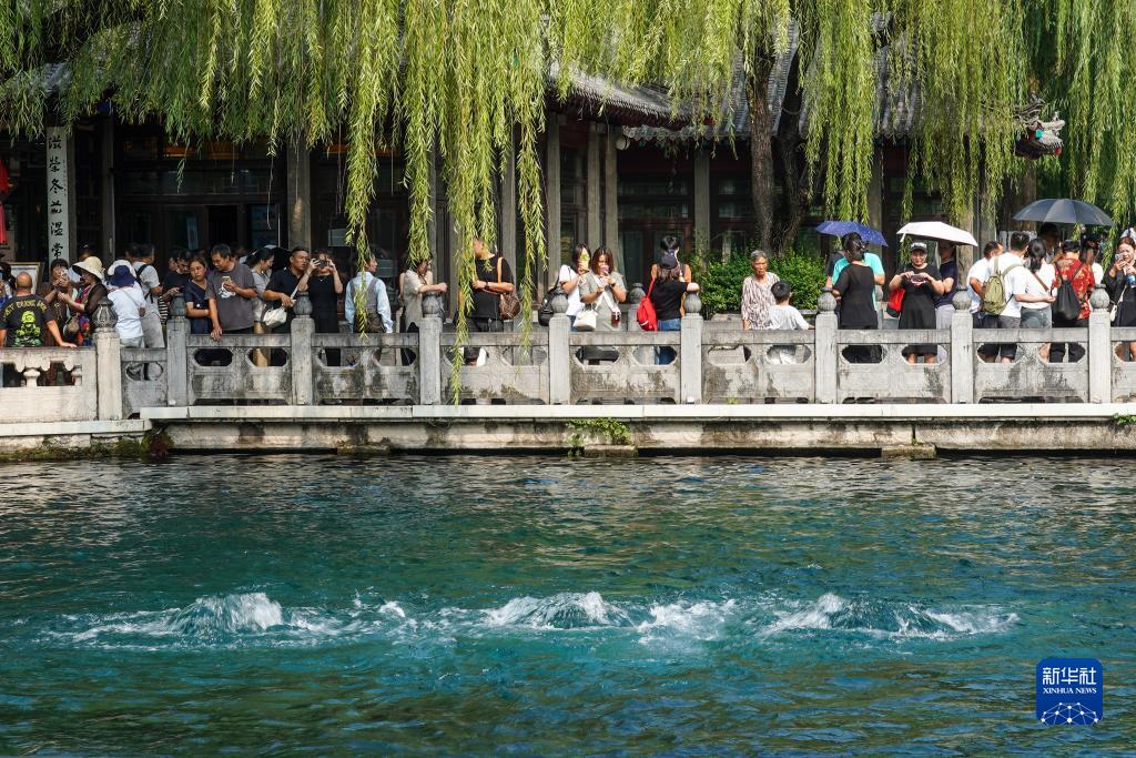 當日,被譽為“天下第一泉”的濟南趵突泉“水涌若輪”,自2003年9月6日復涌至今,已持續噴涌20年,當日趵突泉地下水位達29.34米。