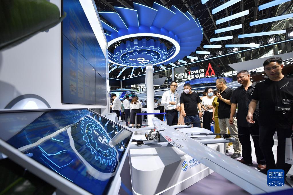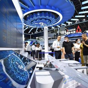9月6日,在2023中國國際數字經濟博覽會上,工作人員向參觀者介紹空天地一體化應急通信保障體系。
