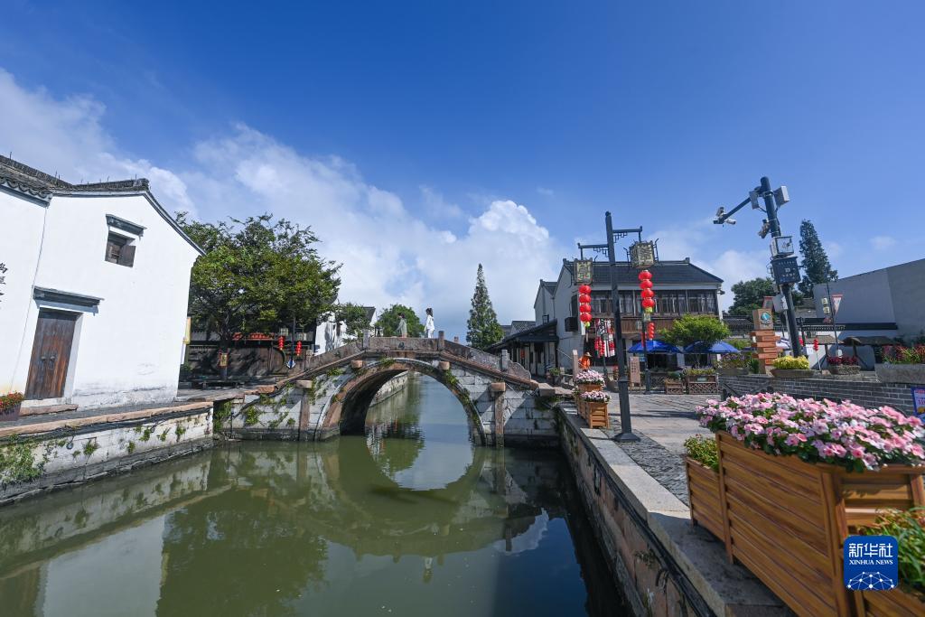 9月6日,游客在游覽湖州市吳興區織里鎮義皋古村落。