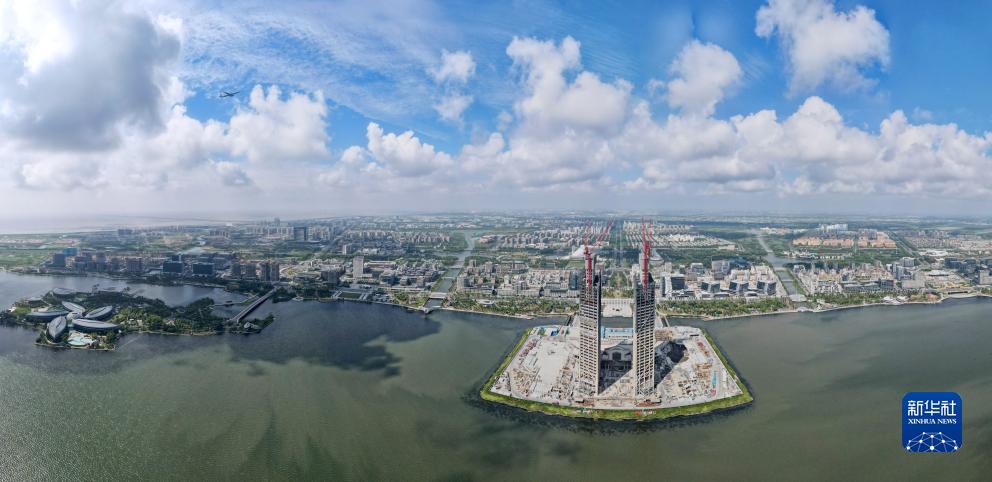 9月6日拍攝的臨港西島中銀金融中心項(xiàng)目建設(shè)工地(無人機(jī)照片)。
