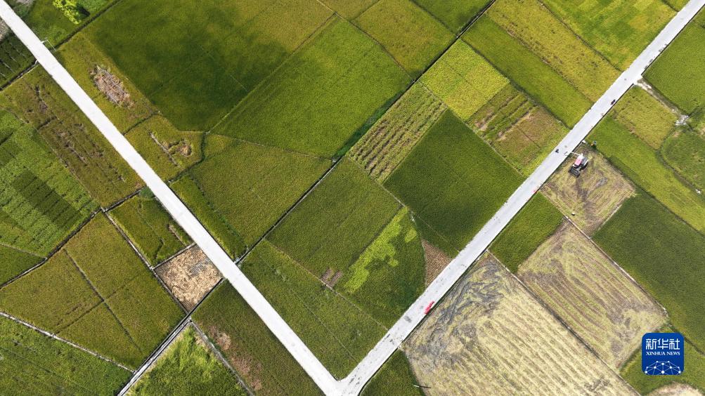 初秋時節,貴州省黔東南苗族侗族自治州黃平縣舊州鎮萬畝大壩種植的水稻陸續進入收割期,村民們搶抓農時開始收割稻谷,一派繁忙景象。