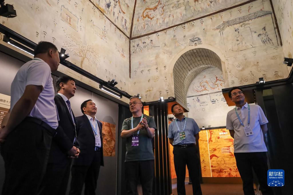 9月6日,與會嘉賓在第六屆絲綢之路(敦煌)國際文化博覽會上參觀酒泉魏晉壁畫墓復制展。