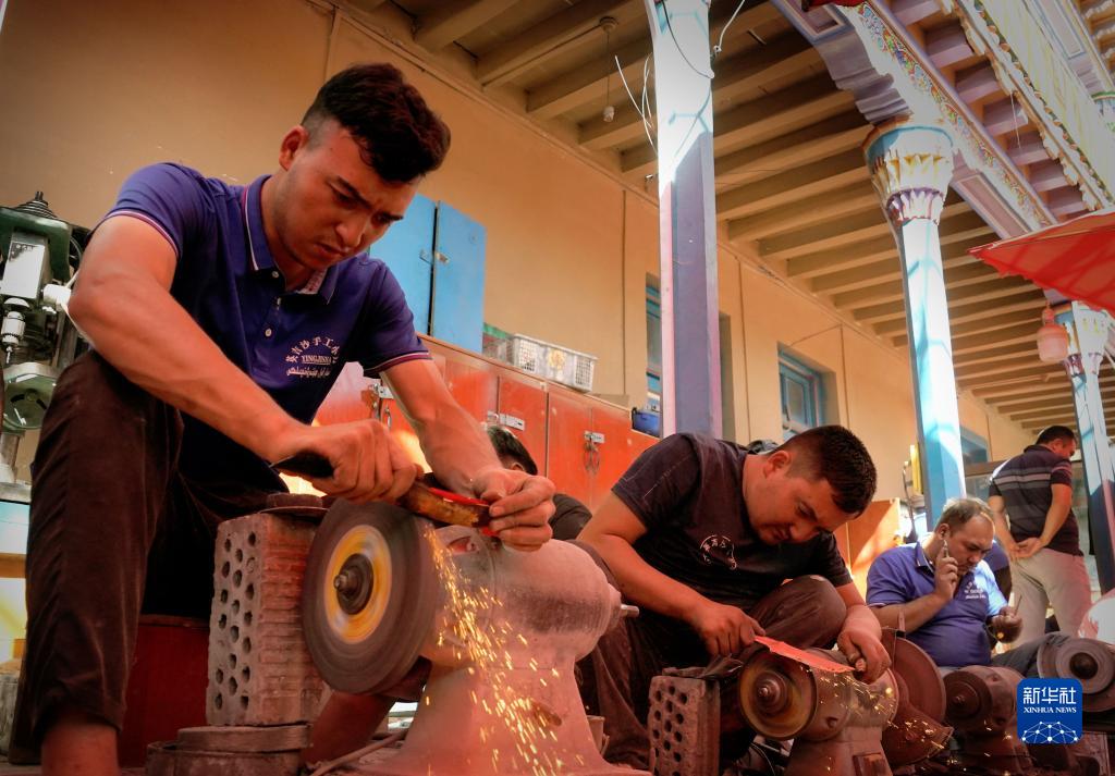 新疆喀什地區英吉沙縣擁有眾多非物質文化遺產項目,其中維吾爾族傳統小刀制作技藝和維吾爾族模制法土陶燒制技藝等為國家級非物質文化遺產。近年來,英吉沙縣依托非遺資源,在文化潤疆進程中傳承發展民族傳統特色手工業,打造非遺產業新業態、新動能,助力鄉村振興。