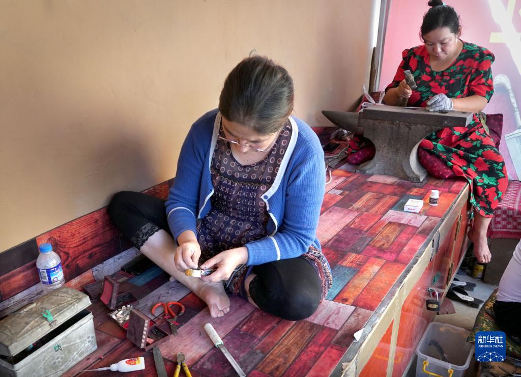 9月5日,手工藝人在英吉沙縣芒辛鎮喀拉巴什蘭干村的英吉沙小刀工藝園內制作小刀。