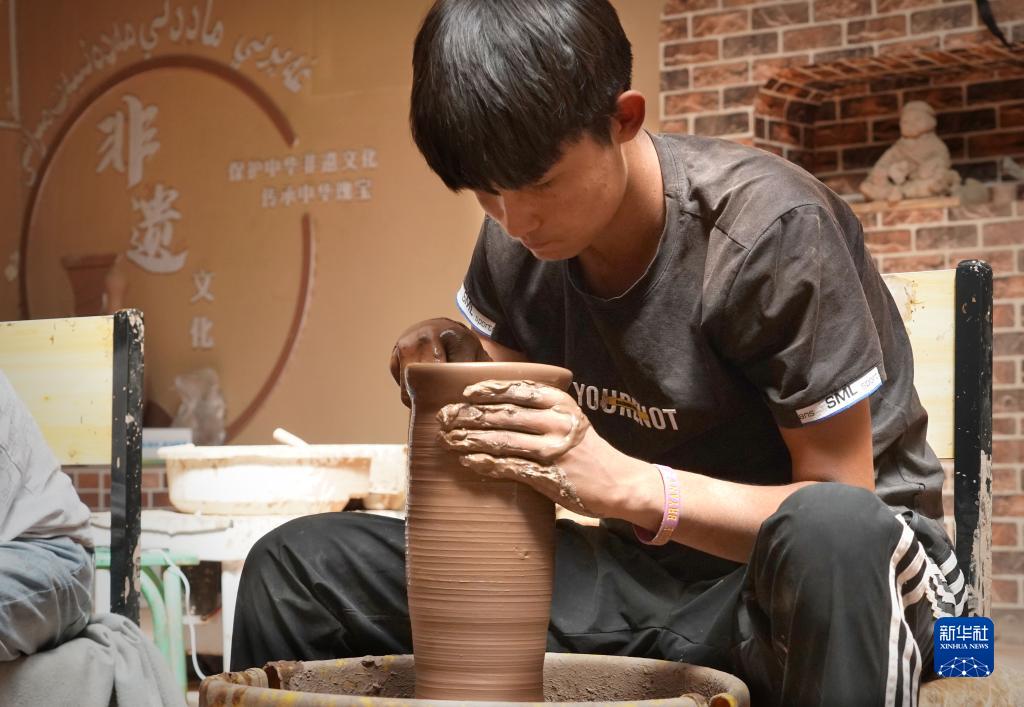 9月5日,手工藝人在英吉沙縣芒辛鎮恰克日庫依村制作土陶。