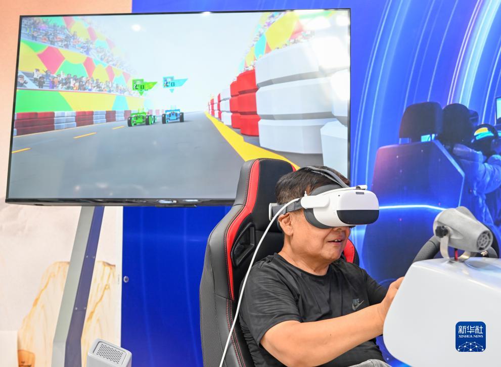 9月6日,觀眾在服貿(mào)會文旅服務(wù)專題展區(qū)體驗(yàn)VR游戲。