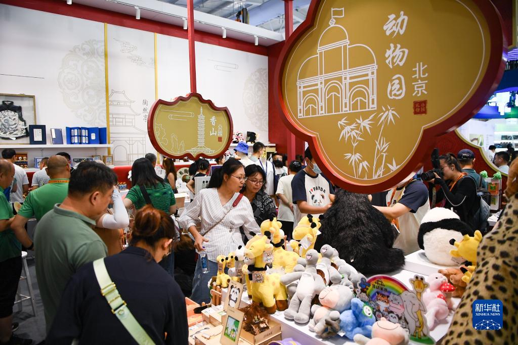 9月6日,觀眾在服貿會文旅服務專題展區“公園禮物”展位選購北京市各公園的文創產品。