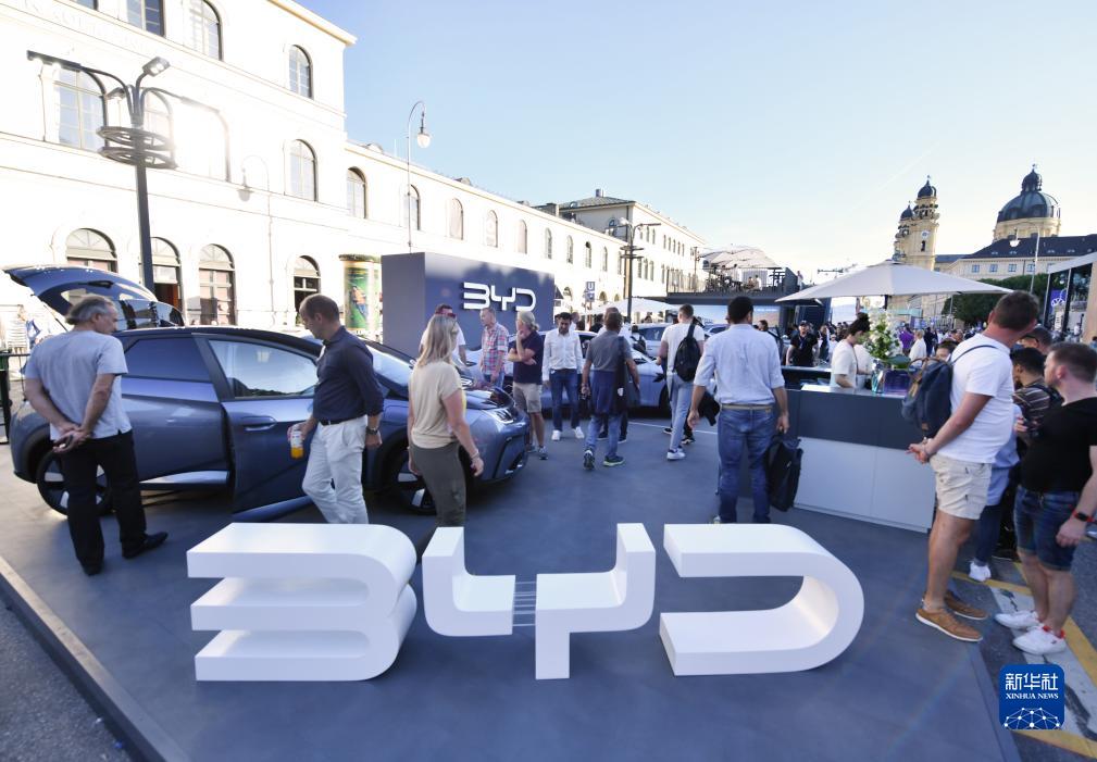9月5日,人們在德國慕尼黑國際車展的城市公共展示區(qū)參觀比亞迪汽車。