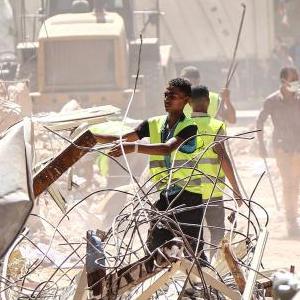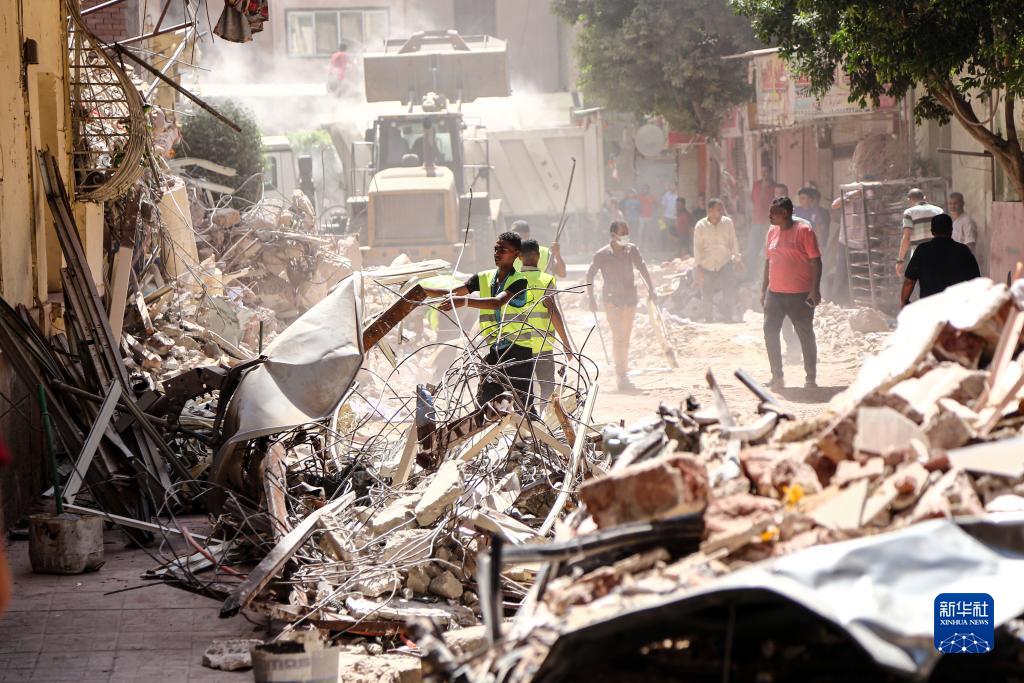 9月6日,救援人員在埃及開羅的樓房倒塌現場工作。