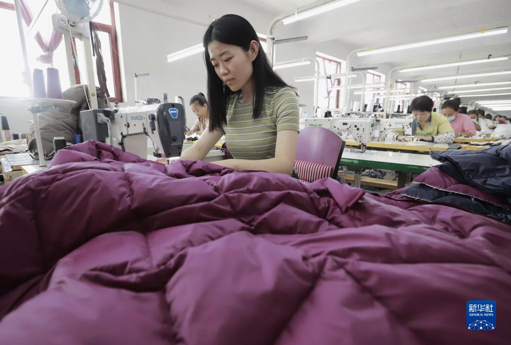 9月6日,工人在遵化市石門鎮(zhèn)一家服裝加工企業(yè)的生產(chǎn)車間工作。