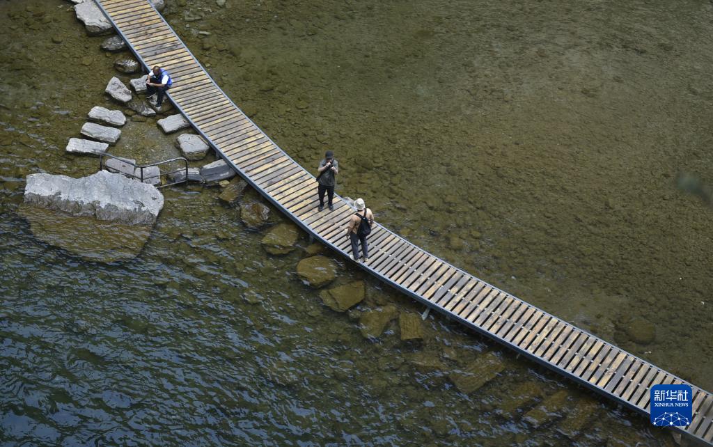 9月6日,游人在太行大峽谷中的桃花谷景區(qū)游覽。