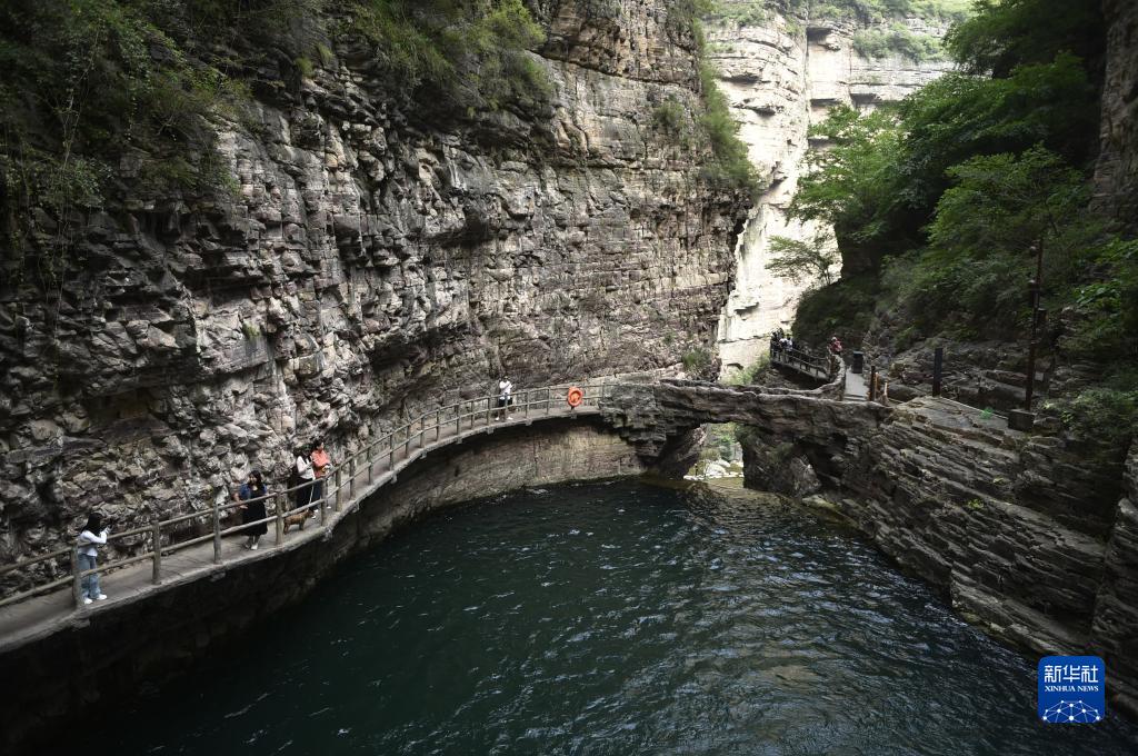9月6日,游人在太行大峽谷中的桃花谷景區游覽。