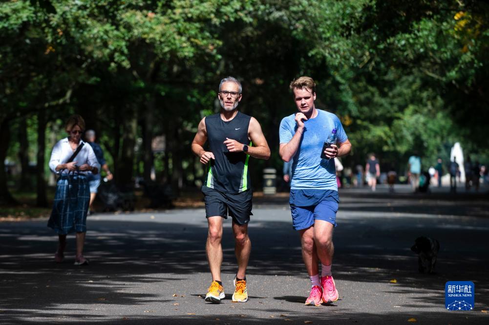9月6日,兩名男子在英國倫敦攝政公園內(nèi)慢跑。