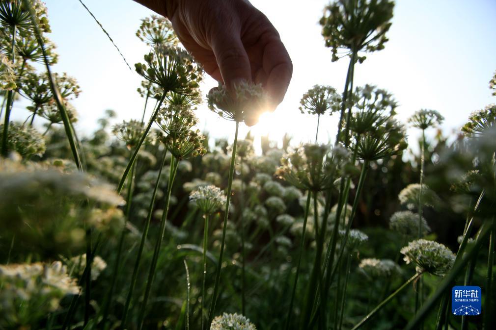 9月6日,在山東省臨沂市平邑縣地方鎮(zhèn)黃城村,村民在采摘韭菜花。