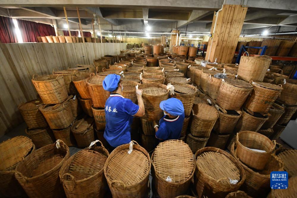 在梧州市龍圩區一家茶企,工人在陳化倉作業(8月25日攝)。
