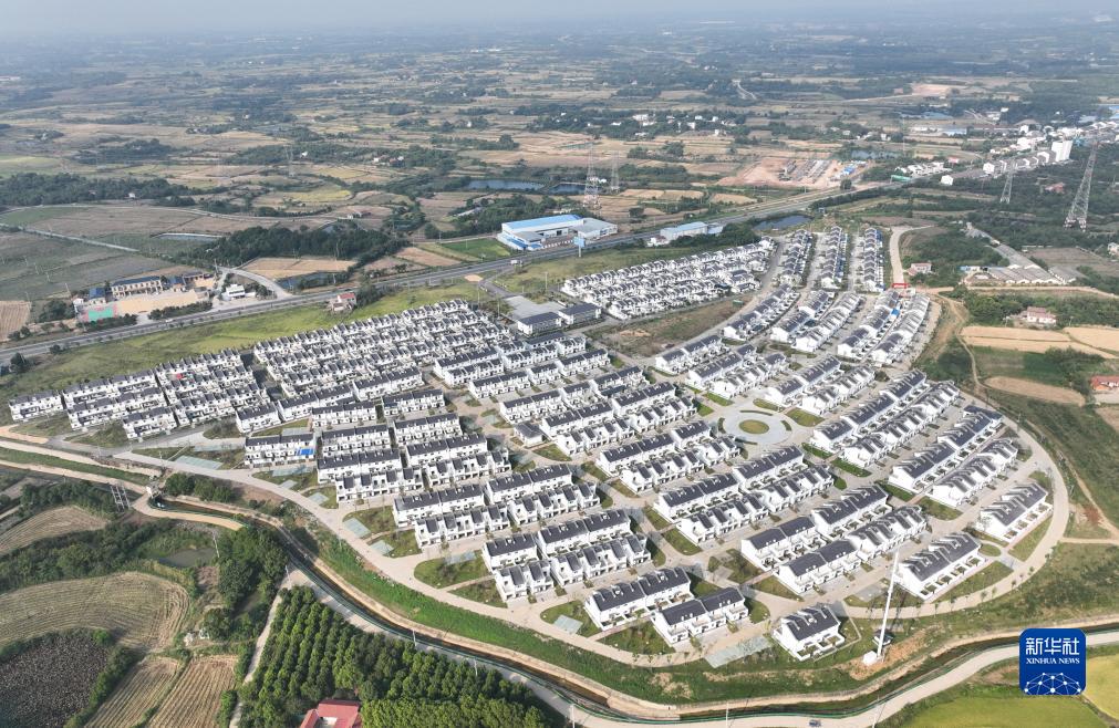 建設(shè)完工的沙洋縣沈集鎮(zhèn)帥店新社區(qū)(9月7日攝,無人機(jī)照片)。