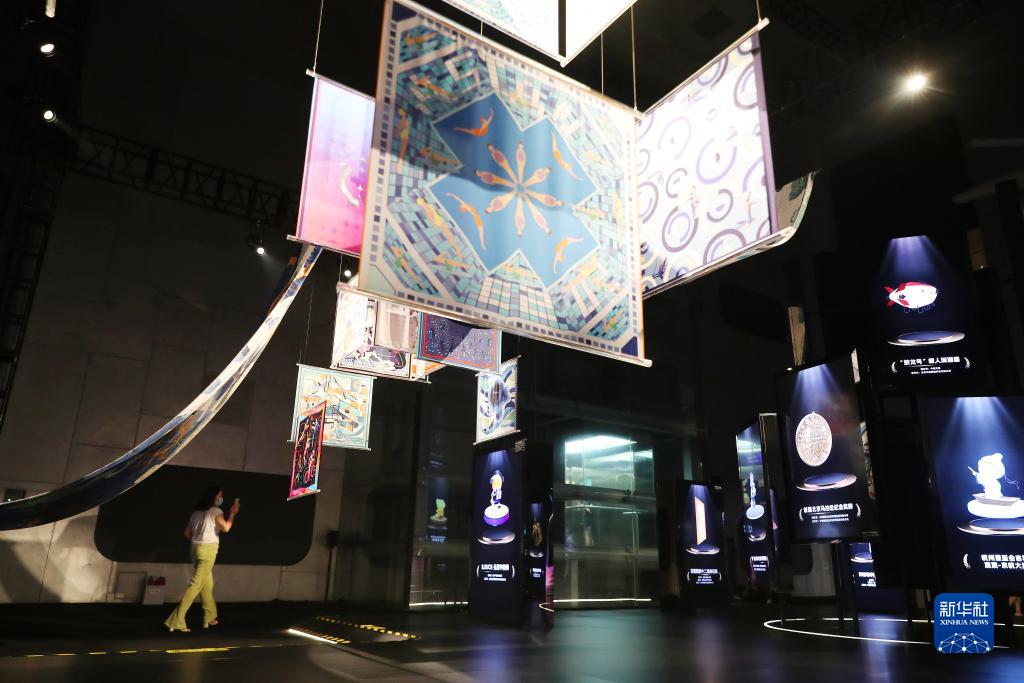9月7日,參觀者走在外灘大會展覽區(qū)數(shù)字藝術(shù)館內(nèi)。