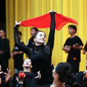 古麗巴努爾·庫爾恰克和同事們在排練舞蹈節目《花兒為什么這樣紅》(9月4日攝)。
