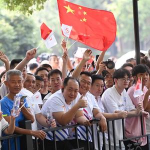 9月8日,人們在路邊等待火炬?zhèn)鬟f。