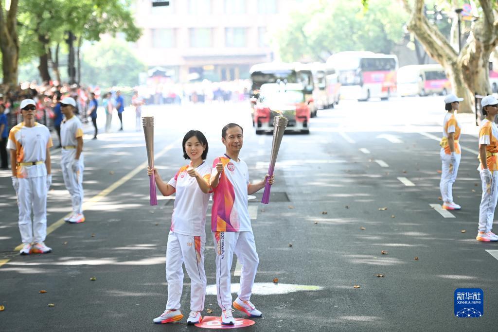 當日,杭州亞運會火炬傳遞在杭州西湖涌金公園廣場啟動,共有106棒火炬手參與當日傳遞。