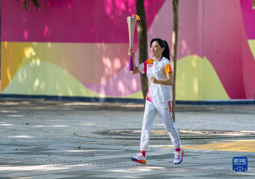 9月8日,火炬手羅雪娟在火炬傳遞中。