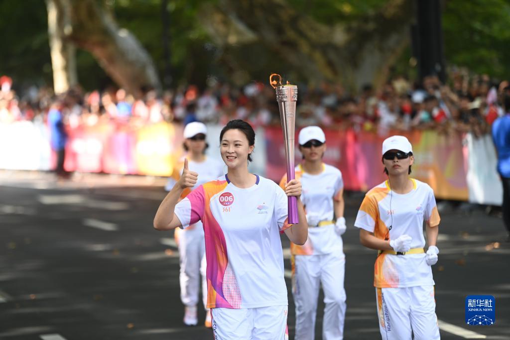 當日,杭州亞運會火炬傳遞在杭州西湖涌金公園廣場啟動,共有106棒火炬手參與當日傳遞。