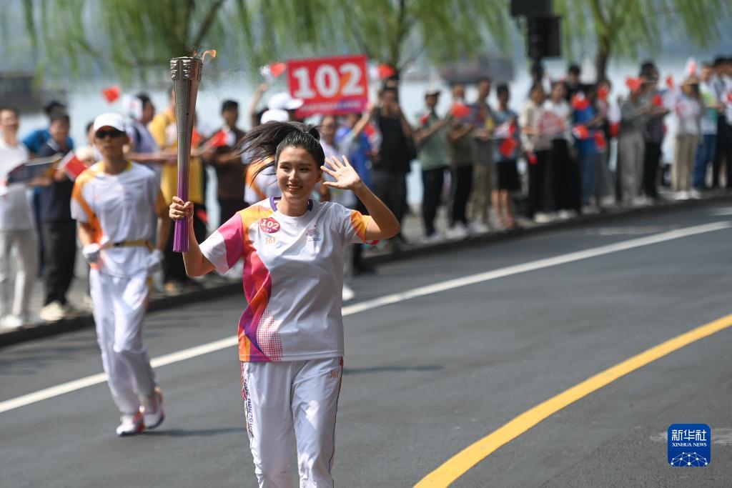 當日,杭州亞運會火炬傳遞在杭州西湖涌金公園廣場啟動,共有106棒火炬手參與當日傳遞。