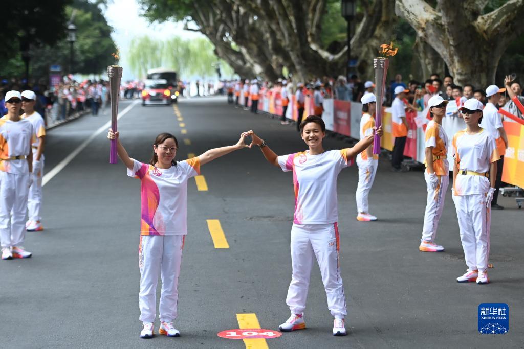 當(dāng)日,杭州亞運(yùn)會火炬?zhèn)鬟f在杭州西湖涌金公園廣場啟動,共有106棒火炬手參與當(dāng)日傳遞。