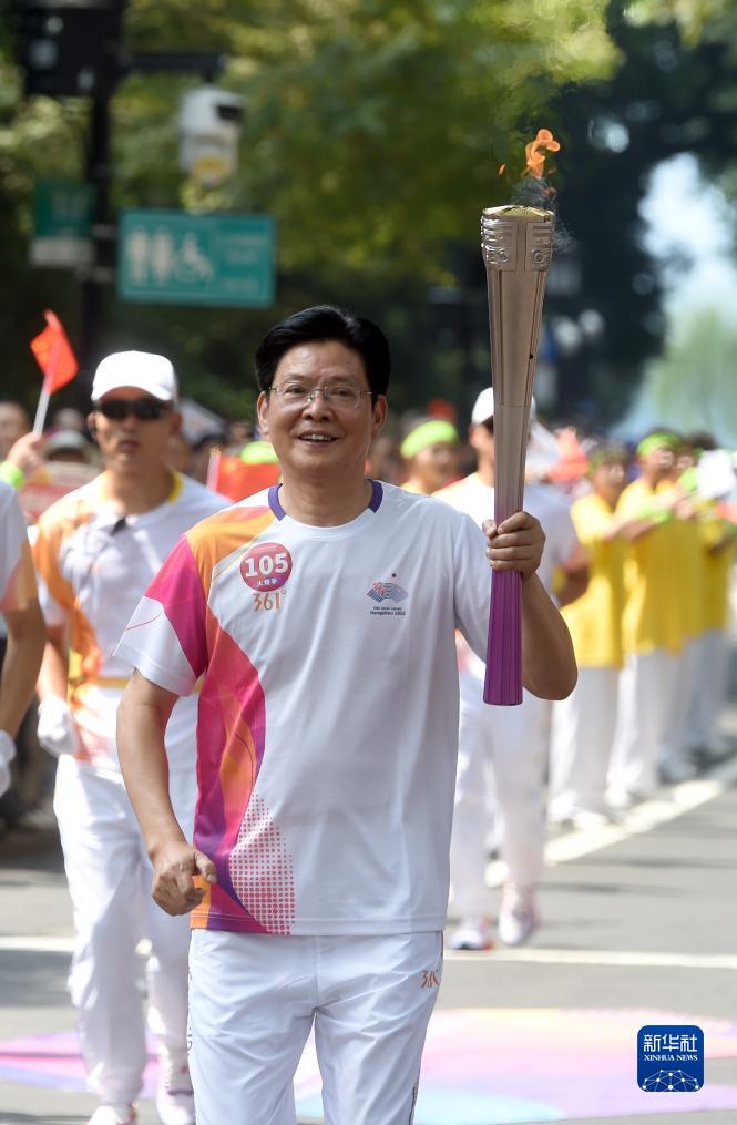 當日,杭州亞運會火炬傳遞在杭州西湖涌金公園廣場啟動,共有106棒火炬手參與當日傳遞。