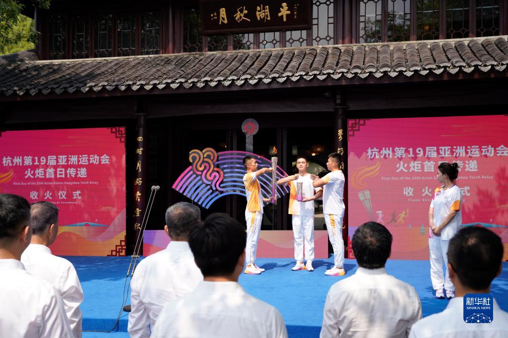 9月8日,杭州亞運會火炬首日傳遞收火儀式在杭州西湖景區平湖秋月景點進行。