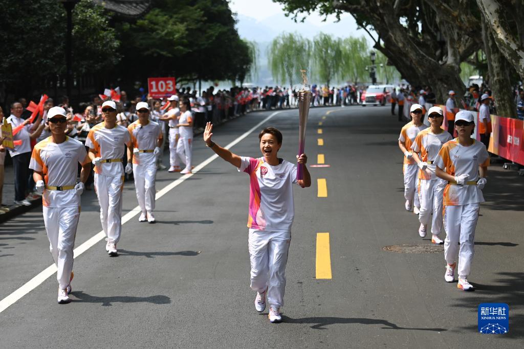 當(dāng)日,杭州亞運(yùn)會火炬?zhèn)鬟f在杭州西湖涌金公園廣場啟動,共有106棒火炬手參與當(dāng)日傳遞。