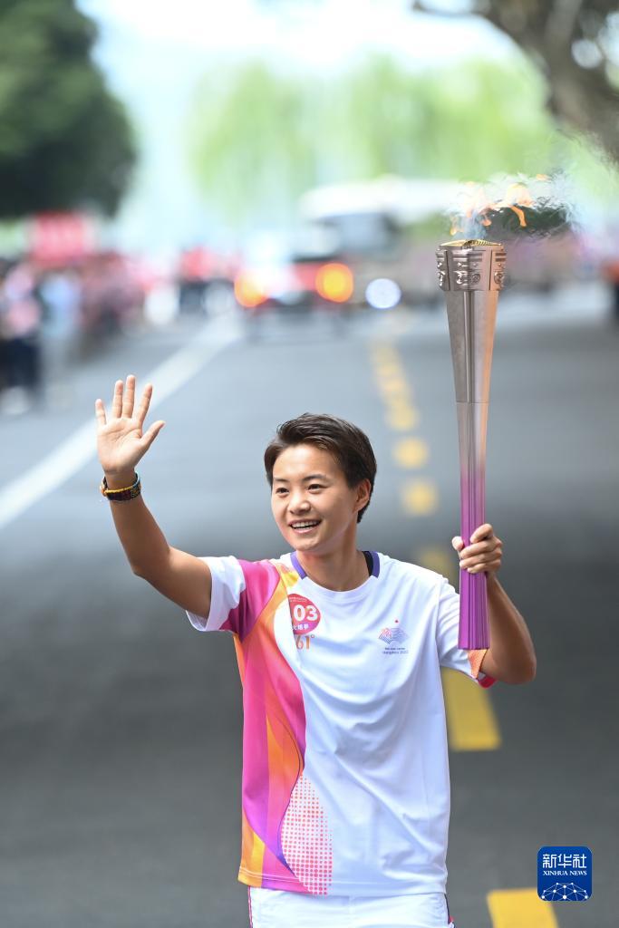9月8日,火炬手王霜在火炬傳遞中。